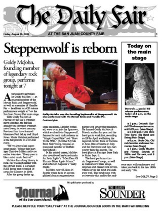 A band led by keyboardist Goldy McJohn — an original member of the Mynah Birds and Steppenwolf, as well as a member of Humble Pie — headlines in a CD release performance tonight at 7 on the San Juan County Fair main stage.