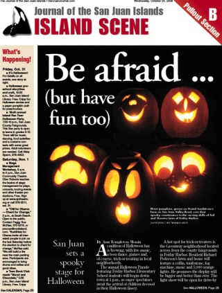 A hot spot for trick-or-treaters is the Greenway neighborhood located across from the county fairgrounds in Friday Harbor. Resident Richard Pederson’s lawn and home will feature a coffin, tombstone, fog machine, music and 5,000 orange lights. He promises the display will be bigger and better than ever. The light show will be open for drive-by viewing Thursday night.