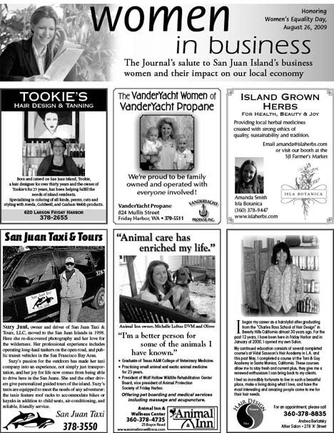 To commemorate that anniversary, this week’s edition of The Journal of the San Juan Islands features an eight-page Women in Business section, profiling local businesswomen and their contributions to our local economy.