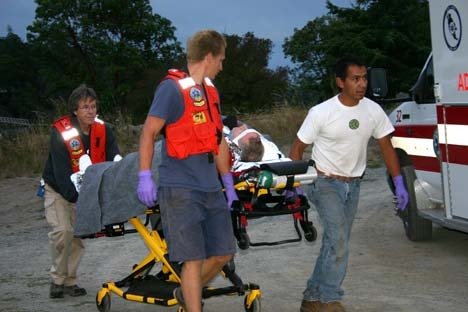 Because of the sea conditions – swells, according to EMS Chief Jim Cole – Chevalier, Nash and Sam were taken to the Cape San Juan Marina, where they were treated. Chevalier and Nash were stabilized and transported in separate ambulances to Cattle Point, where Airlift Northwest helicopters flew them to mainland hospitals.