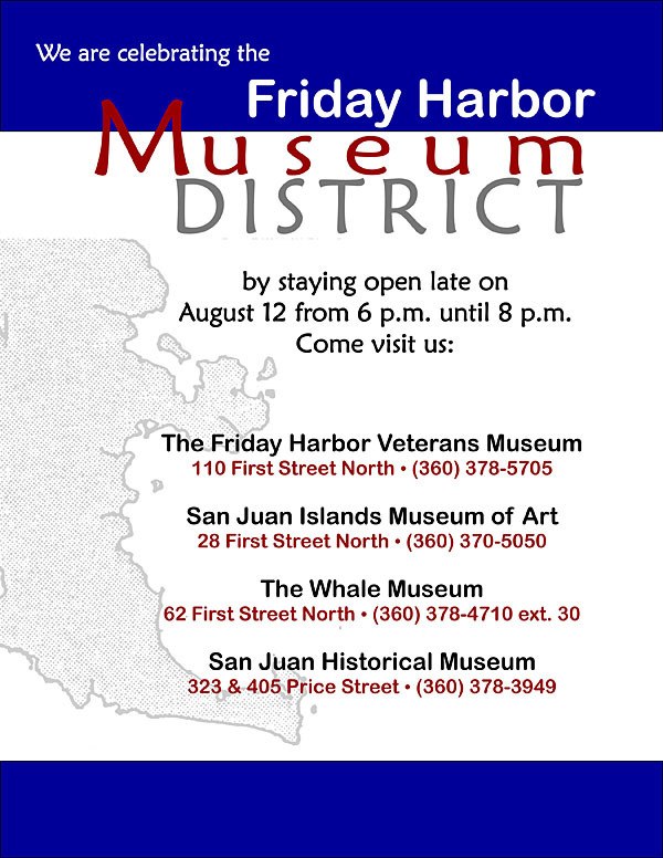 Friday Harbor’s five museums will be open late Thursday to celebrate the Friday Harbor Museum District, a collaborative partnership of the museums.