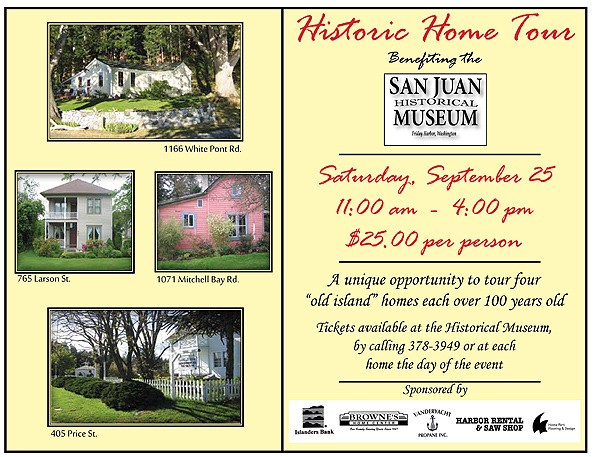 The San Juan Historical Museum hosts an “old island” historical home tour on Saturday, Sept. 25, from 11 a.m. to 4 p.m.