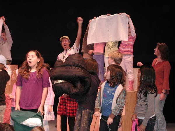 Children and parents rehearse for the family theater production at the San Juan Community Theatre