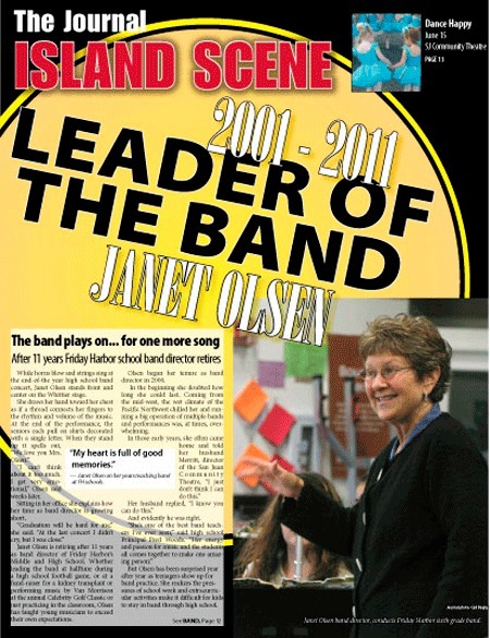 Janet Olsen is retiring after 11 years as band director of Friday Harbor’s Middle School and High School. Whether leading the band at halftime during a high school football game, or at a fund-raiser for a kidney transplant or performing music by Van Morrison at the annual Celebrity Golf Classic or just practicing in the classroom, Olsen has taught young musicians to exceed their own expectations.