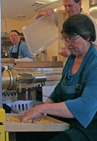 With the extruder in full swing, Michael said the crew can produce 20 pounds of ravioli in about 45 minutes, but preparing the customized fillings generally takes another 45 minutes to an hour.