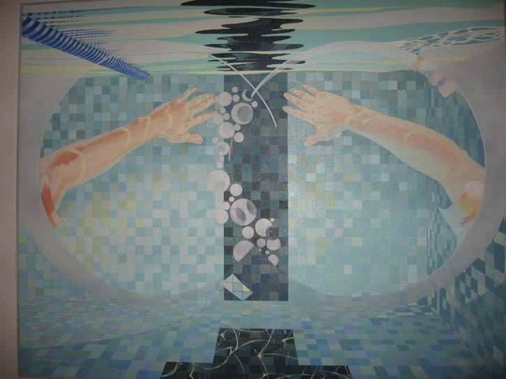 The pieces range from watercolors, to stone lithography, to graphite and turpentine acrylics, oils, to crayon and nitro cellulose lacquer sprayed onto formed Belgian linen.