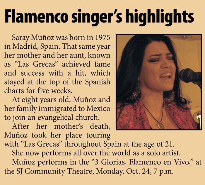 Muñoz performs in the “3 Glorias, Flamenco en Vivo,” at the SJ Community Theatre, Monday, Oct. 24, 7 p.m.