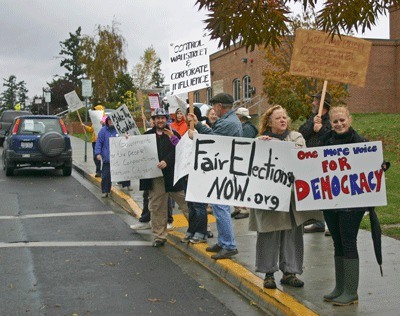 Initially, DeLong thought of holding “Occupy Friday Harbor” at the Elections Offices to make a positive statement — advocating for people to get involved and to stay involved in democracy.