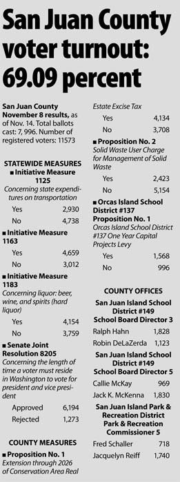 San Juan County November 8 results, as of Nov. 14. Total ballots cast: 7, 996. Number of registered voters: 11573