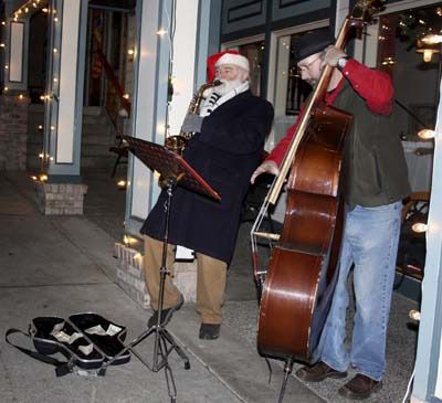Despite the cold, a few people stopped to enjoy a jazzy version of a “White Christmas” and dropped a few dollars in the saxophone’s case set on the sidewalk.