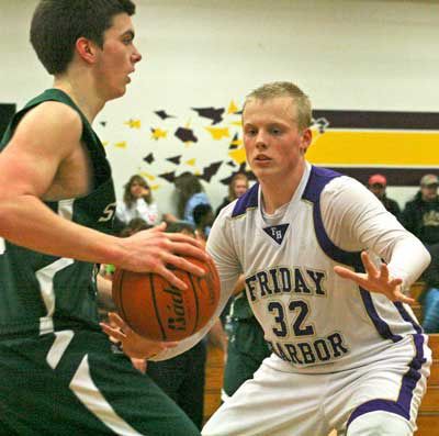 On the offensive end, Friday Harbor big men Collin Williamson and Otis Cooper-West carried the load. Williams, a junior, led all scorers with 17 points and Cooper-West, a sophomore, contributed 15. The two low-post players accounted for 32 of the Wolverines 53 points. Sophomore guard C.J. Woods added 14 to the team total.