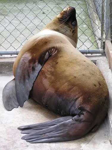 As it turns out, Mojo rebounded like a NBA all-star in a 14-week convalescence at the wildlife rehab center. After two weeks in intensive care, the pup had regained enough strength to be moved into an outdoor enclosure where it could swim in a pool, lounge in the sun and eat, eat, and eat. Which it did. In just over three months, Mojo put on roughly 230 pounds by gobbling down about 15 pounds of high-quality herring a day.