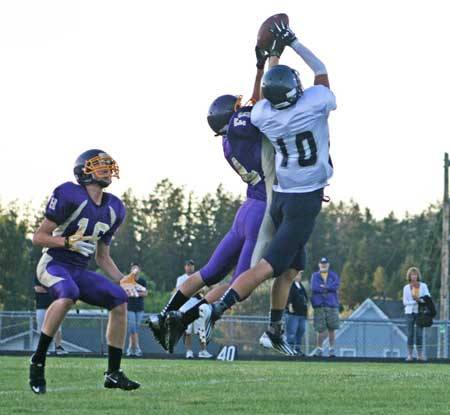 Either way, those two big plays, combined with several others, like C.J. Woods’ 16-yard TD pass to receiver Donald Galt on fourth-and-eight, added up to win No. 2 of the season for the Wolverines, as they out-dueled Lynden Christian 21-14 in a see-saw battle, Friday, under the lights in Friday Harbor.