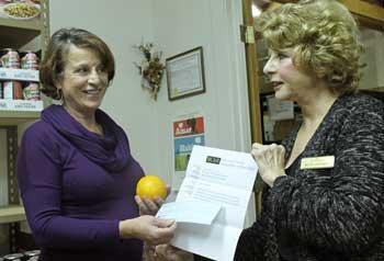 San Juan Island’s Bette Cantrell, president of the realtors association, presented checks to the Food Bank and Family Resource Center Nov. 16 as part of the association annual holiday season donation drive.