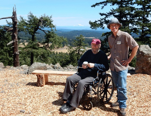 Bob called me and wondered how we could get Allan a Mt. Grant hat. In talking to Allan, he said how much he would love to see Mt. Grant. It was proposed to Life Care we take a group up to the top. With a little coordination and Life Care’s help, we gathered Allan and a few of his pals earlier this week. On a sun-filled day we drove up to see views of snowy mountains in two directions, and dark silhouettes of the San Juan Islands to the east. I asked Thor Hanson, co-chair of the Campaign to Save Mount Grant, to meet the van up there to present Allan the cap, in honor of his work preserving special wild places.