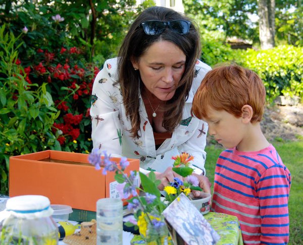 There were several tables set up amongst the old heritage fruit trees of Driggs Park, off Argyle. Each table provided different hands on projects, including making “bee hotels” which consisted of straws placed in evergreen boughs, and hung them in the fruit trees. No word yet whether these hotels still have any vacancies, but no doubt they will all be booked soon. Bees, after all have been pollinating those fruit trees for years, just as they have been pollinating plants all over the islands through out history.
