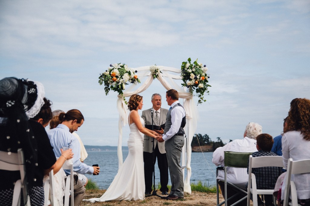 The Wayfarer Entertainment film crew visited the Oldwyns in Edmonds, then spent a couple of days filming on San Juan Island for the show. During the process of learning Jessica’s story, the producers asked about her top wish list. Her answer was a wedding for Danny, the love of her life, who had proposed more than once since her diagnosis. Three separate brain surgeries had left Jessica needing to relearn how to walk and talk, and so a wedding had continually seemed an impossible feat. (See photo above.)