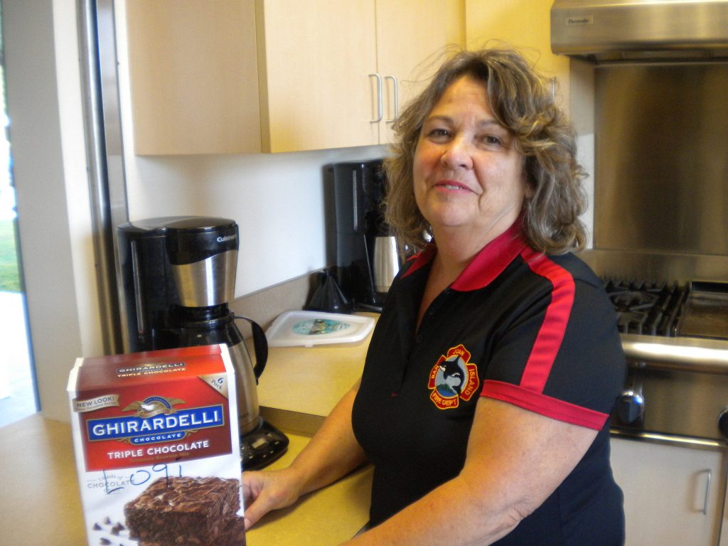 Her job in logistics is not only preparing meals for firefighters on the fire line but might include directing traffic during fire activity and filling the air bottles that firefighters use. She loves learning new recipes and being able to feed many firefighters in an emergency. This gives her a sense of being a part of a family and connected to those she is helping. For those married to firefighters, Byrne says it is a good way to be involved with what his/her spouse does and meet the people they are involved with. Joan needs and enjoys the challenges of her many roles in the fire department.