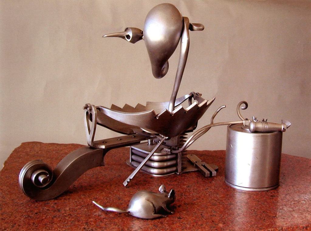 John F. Heric (1942 – 2011) was a professor of art, accomplished musician and resident of San Juan Island. His creative imagination, skillful mastery of materials, and unique sense of humor are evident in this entertaining but powerful, retrospective exhibition. Using familiar forms and a play on words, he changed commonly accepted ideas and assumptions into poignant, figurative groupings with understated, dry humor.