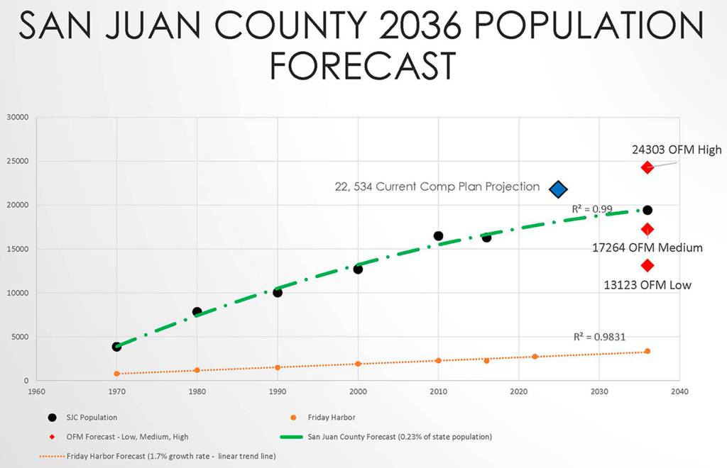 Instead, community development employees used the percentage of the county’s state population to form the most statically valid estimation possible. An average .23 percent of Washingtonians lived on the islands over the past 36 years, according to the report. Colin Maycock of community development said using average annual growth rates to project the population created a “less valid number.”