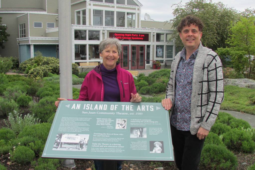 “An Island of the Arts,” the newest Town of Friday Harbor history panel, can be seen on the corner just outside San Juan Community Theatre. The sign celebrates the significance of the arts to Friday Harbor history and reminds us of its importance to the community’s bright future.