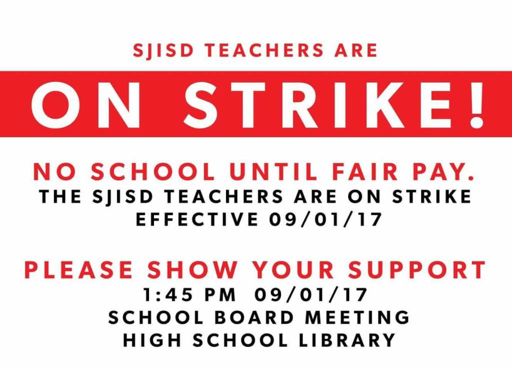 According to SJISD Superintendent Danna Diaz, “This is a very difficult situation for our entire community. The district is committed to resolving this situation as quick-ly as possible. Strikes do end, and at that time we will work together again on our shared mission of educating students.”