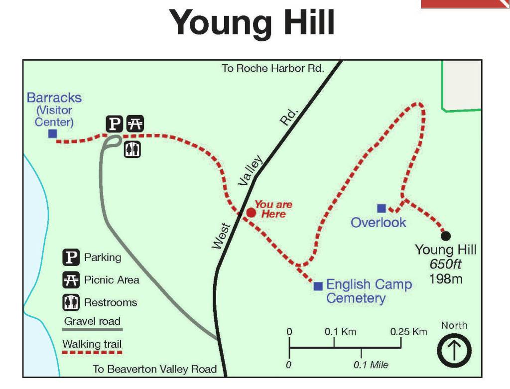 San Juan Island National Historical Park plans to conduct a prescribed fire on Young Hill between late September and early October 2017, when weather permits. As part of post-burn operations, herbicide will be used in selected areas – less than one acre total – to minimize regeneration of non-native species. The park has concluded that burning and thinning on Young Hill over the past decade has resulted in a reduction of native species composition and an increase of invasive species, specifically grasses.