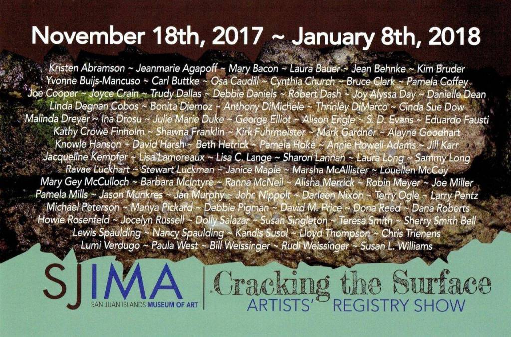 On Saturday, Nov. 18 the San Juan Island Museum of Art opens its doors for the 6th Annual Artists’ Registry Show. The artwork created in this much anticipated and popular exhibit centers around the theme, “Cracking the Surface.” Artists residing on San Juan, Orcas and Lopez Islands will exhibit a diverse collection of artwork and sculpture in clay, wood, glass, textiles, jewelry, mixed media and photography, along with paintings in oil, acrylic, encaustic, watercolor and pastel. Featured artists are members of the organization’s Artists Registry program which supports the local artist community for both emerging and established artists. This years’ exhibit runs from Nov. 18 through Jan. 8. The SJIMA Artists’ Registry exhibition gives islanders and island friends a chance to see the amazing diversity of local artwork available, along with the opportunity to tour the Islands Museum of Art.