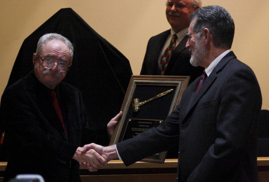 Friends, co-workers and community members gathered at the courthouse to honor Eaton, who turned the state’s mandatory age of retirement, this year, at 75.