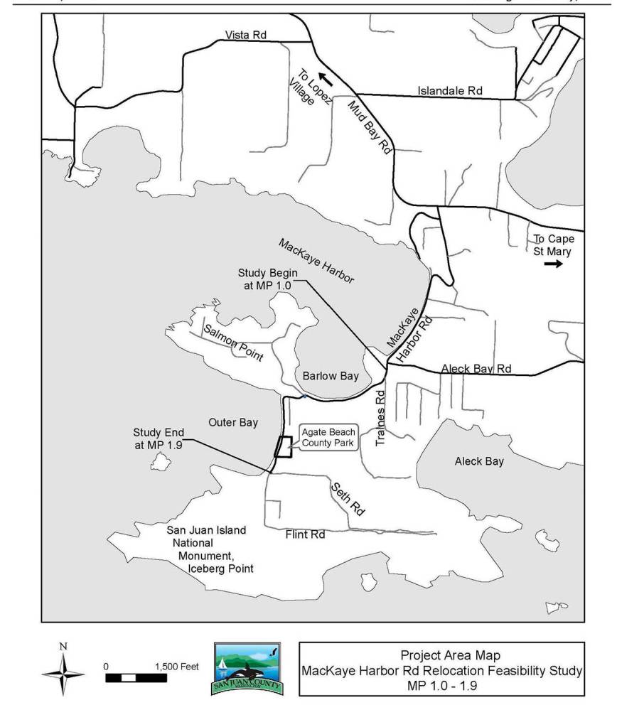 There are water and power lines along MacKaye Harbor Road as well, according to the feasibility study. The report states that the water main along Agate Beach “is in poor condition.” Another water main north of the area broke a few years ago, states the report, and the break showed how vulnerable the line is since it’s so close to the shoreline.