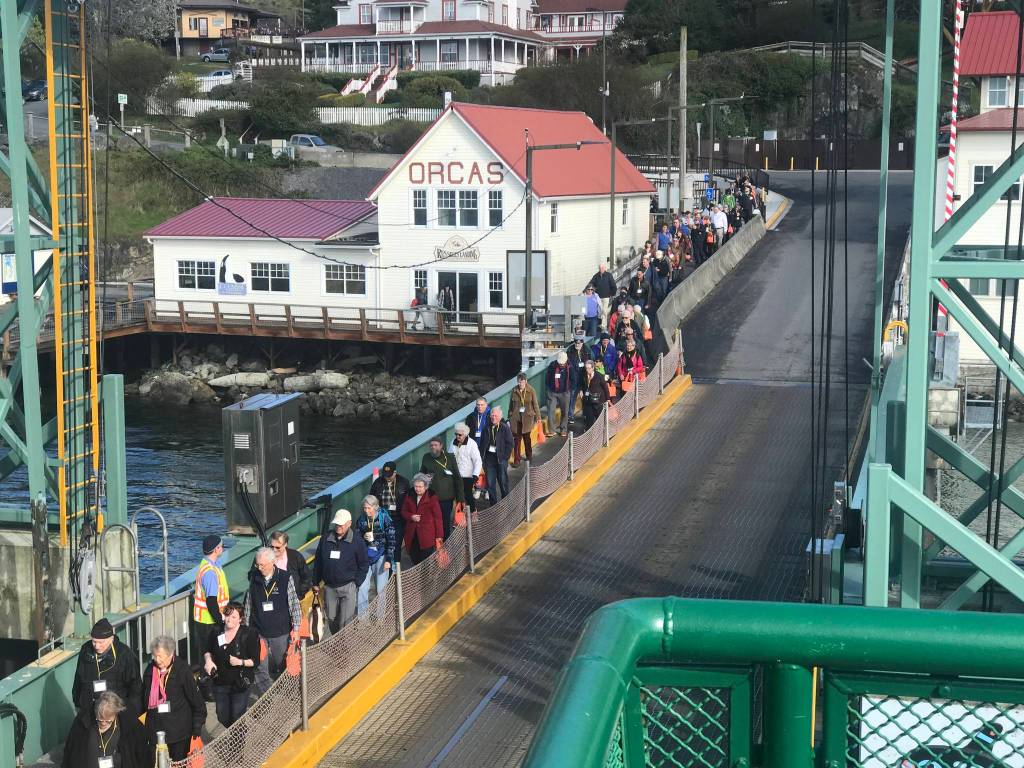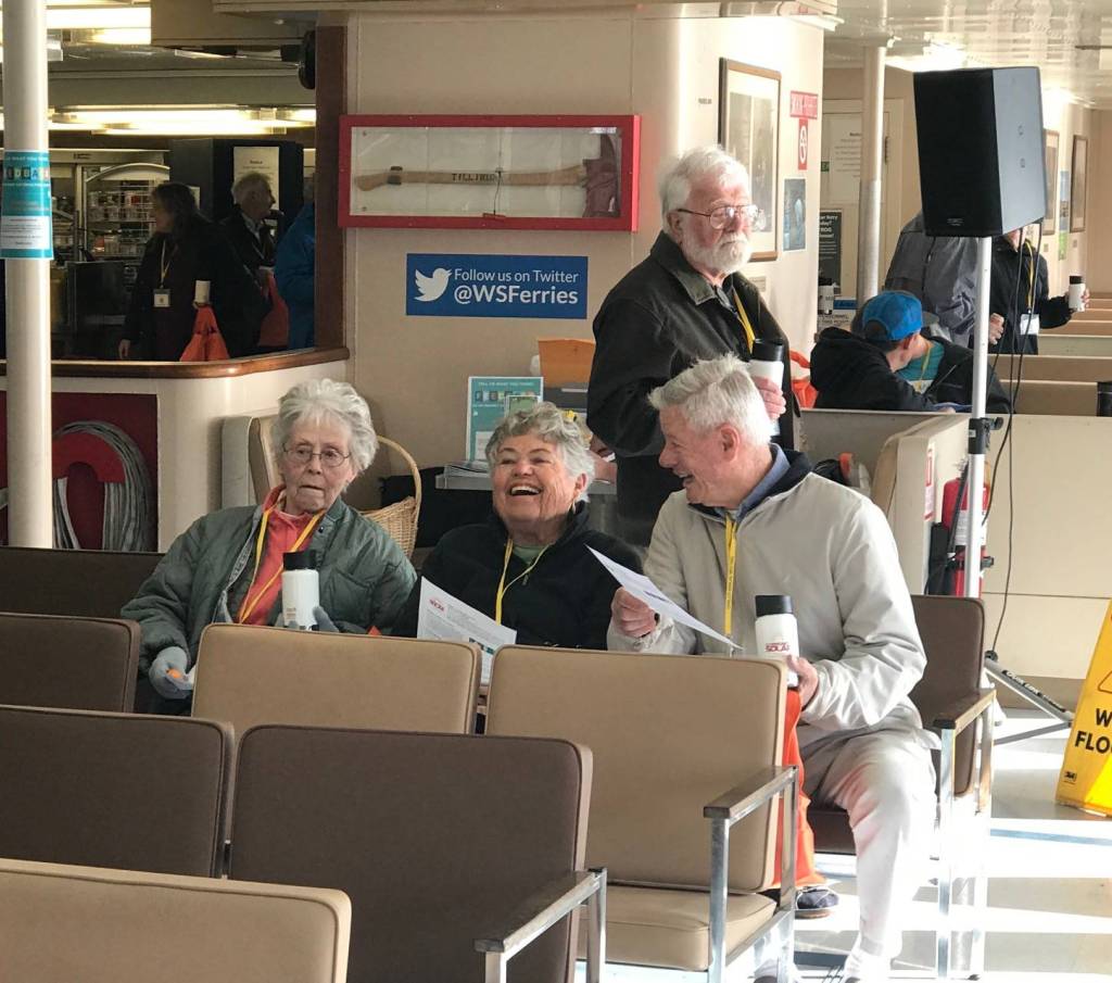 OPALCO members boarded the ferry on Saturday, April 21, to participate in the organization’s 2018 annual meeting. This year the meeting was on the interisland ferry, resulting in significant cost savings for co-op members. With a hearty “Here Comes the Sun!” OPALCO celebrated the early success, with roughly 90 percent of its first Community Solar project sold, and gave members a last chance to participate before the project is fully subscribed.