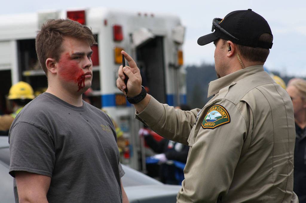 The scene wasn’t one of the real-life teen car crashes that occur daily in the United States, but was a mock scenario as part of a program spearheaded by the San Juan Island Emergency Medical Services. The program aims to act out the dangers of driving recklessly – whether due to texting, speeding or alcohol or drug use. Every three years since 2004, Lainey Volk with EMS has managed the enactment.