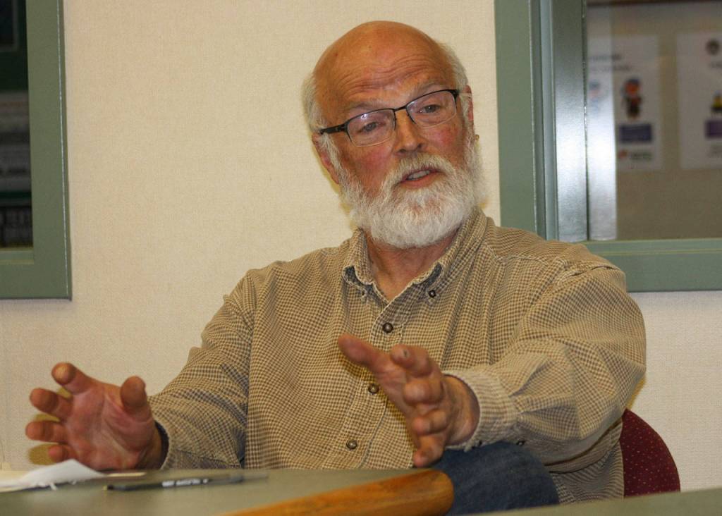 Staff photo/Hayley Day                                San Juan Island School District Board member Jack McKenna discusses the district’s “prudent fiscal management.”