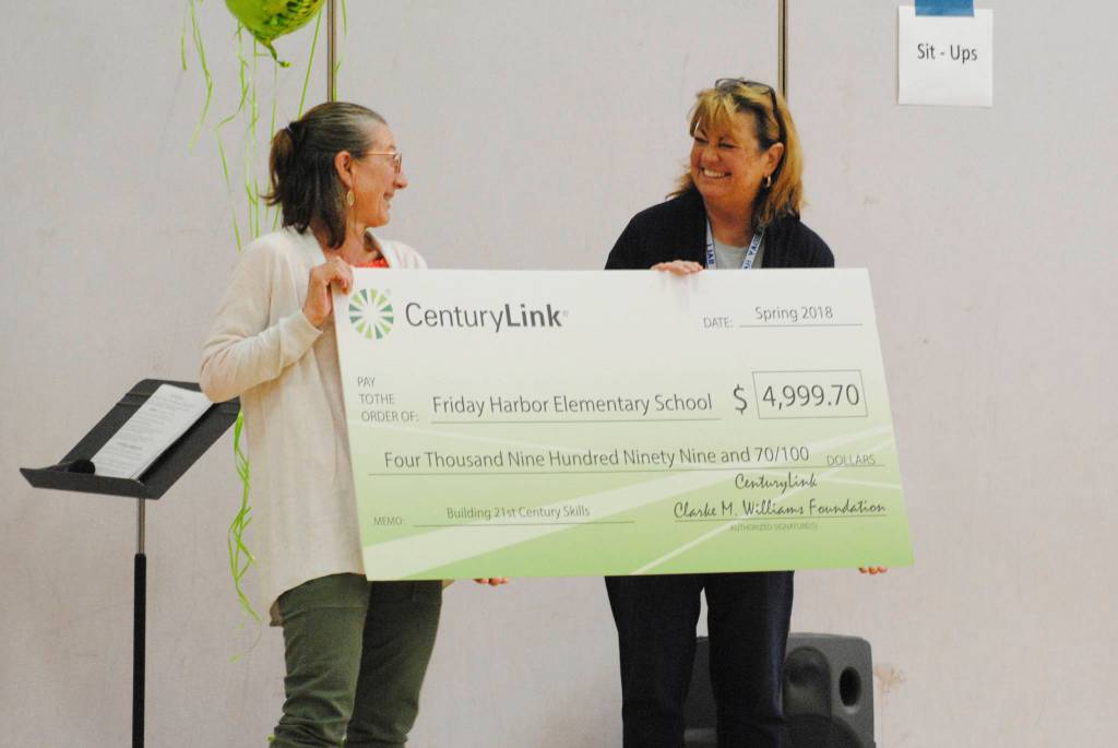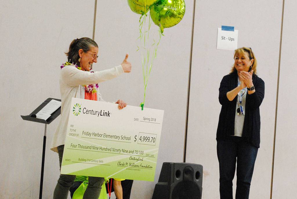 CenturyLink staff had a surprise for Friday Harbor Elementary School teacher Susan Kareken on April 27 — a roughly $5,000 check.