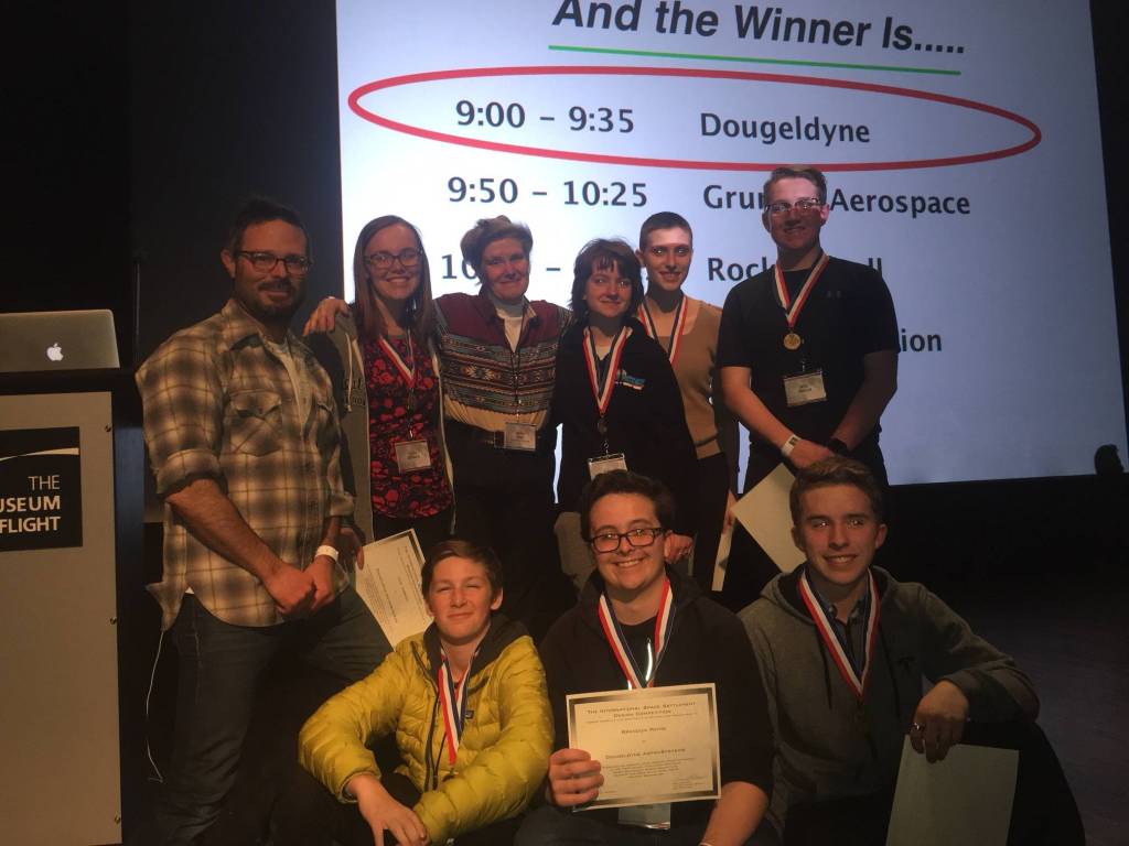 Over the weekend of April 28-29, the Friday Harbor Aerospace Design Team, known as Island Orbital Technologies, won the first ever Northwest Semi-Finals of the International Space Settlement Design Competition. This event, held at the Museum of Flight at Boeing Field, included students from six regional high schools and is part of a worldwide competition which uses aerospace industry simulated scenarios to engage high school students in engineering design and management.