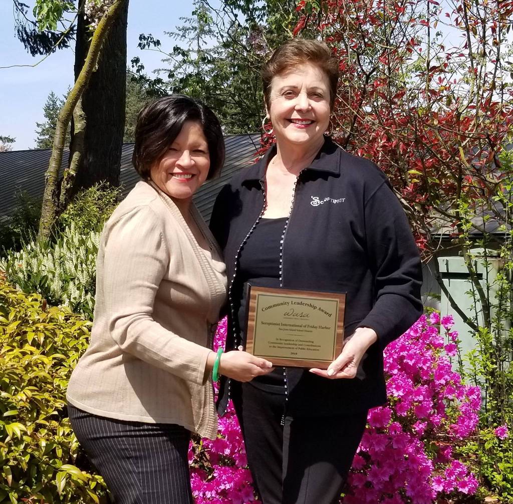 The San Juan Island School District nominated Soroptimists International of Friday Harbor for the Washington Association of School Administrators Region 108 Community Leadership Award for Spring 2018.