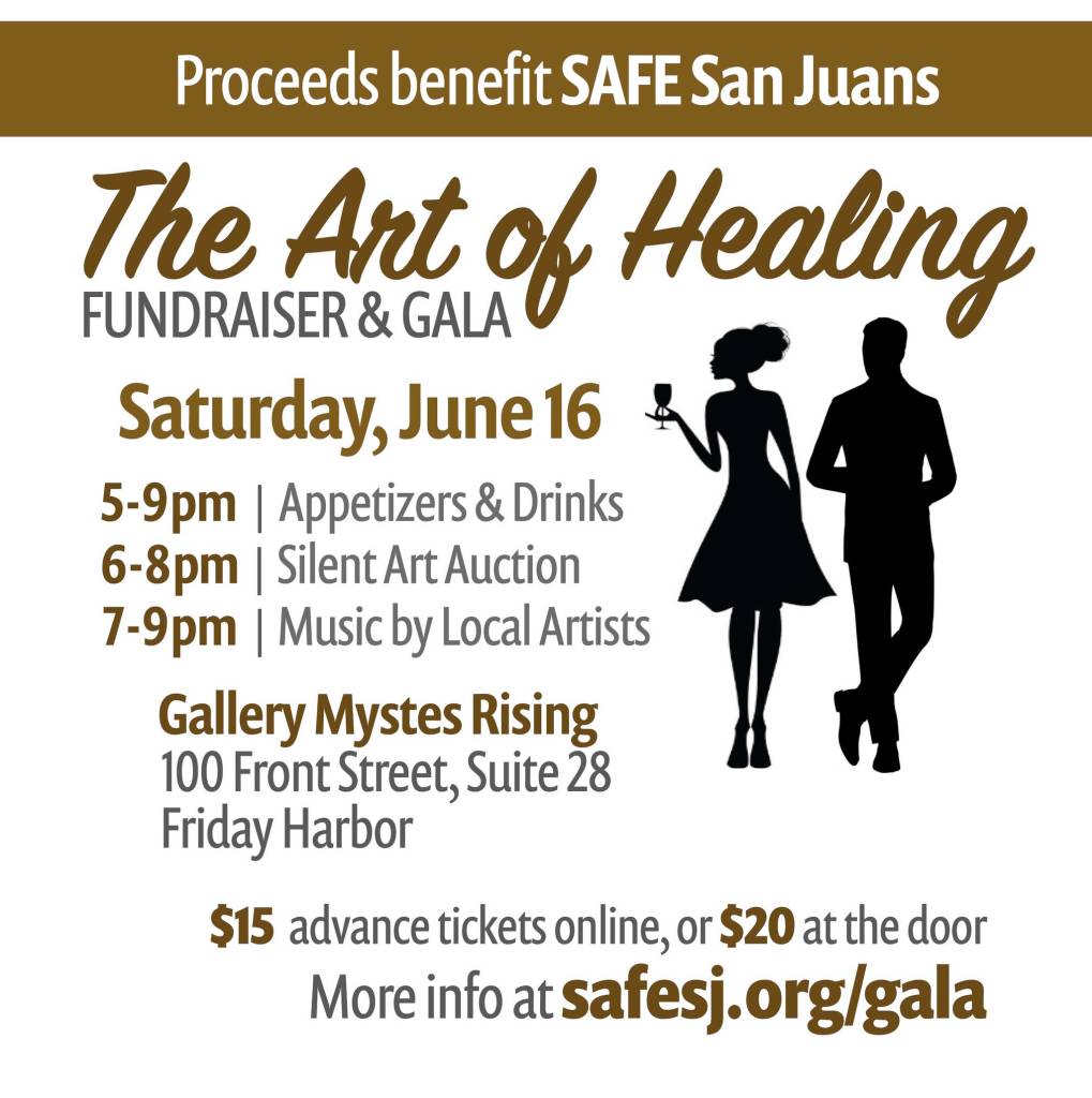 Safe San Juans is holding “The Art of Healing” fundraiser and gala on June 16 at the Gallery Mystes Ring, 100 Front St. Suite 28 in Friday Harbor. The event kicks off at 5 p.m. with appetizers and drinks. From 6-8 p.m. there will be a silent art auction and from 7-9 p.m. there will be music by local artist. Tickets will be $15 online at safesj.org, or $20 at the door. All proceeds benefit SAFE San Juans. For info, visit safesj.org/galla