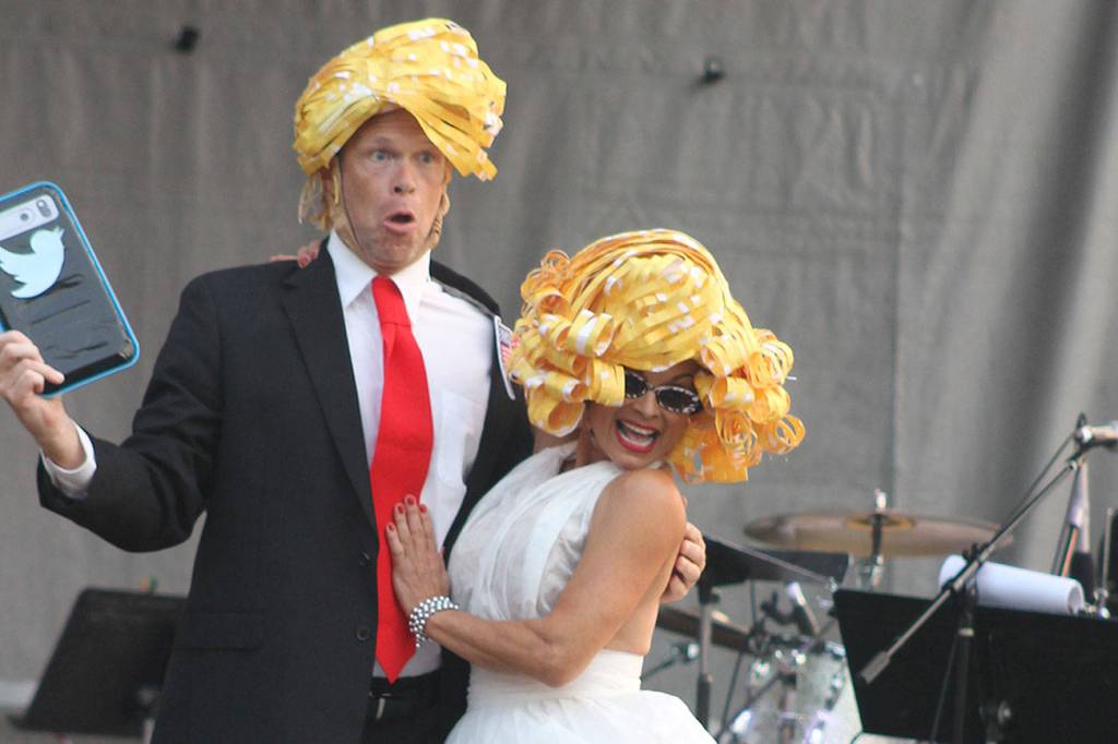 “We have a lot of sizzling styles this year,” Lehman began. Mermaids, robots, knights, flapper girls, Donald Trump and Marilyn Monroe all made appearances, strutting their wearable recycled trash starting at 6:30 p.m., in front of a packed audience surrounding the main fair stage. The show has always been a popular fair tradition, organized by Francie Hansen. Her goal was to inspire people’s creativity while calling attention to the importance of recycling and reusing trash. The event has often been a family affair, with participants age ranging from 4 to 80 years old, including mother and daughter teams, sisters fathers and brothers.