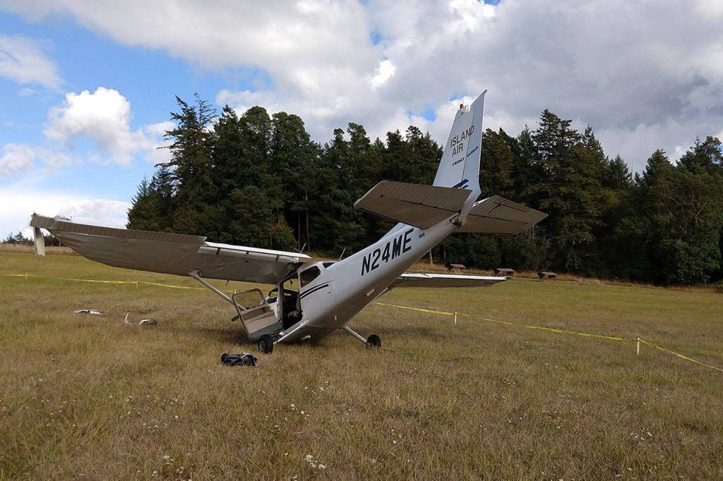 According to witnesses, officials at the San Juan Island site said that a seat malfunction slid the pilot to the rear of the airplane, making it impossible for the pilot to reach the controls.