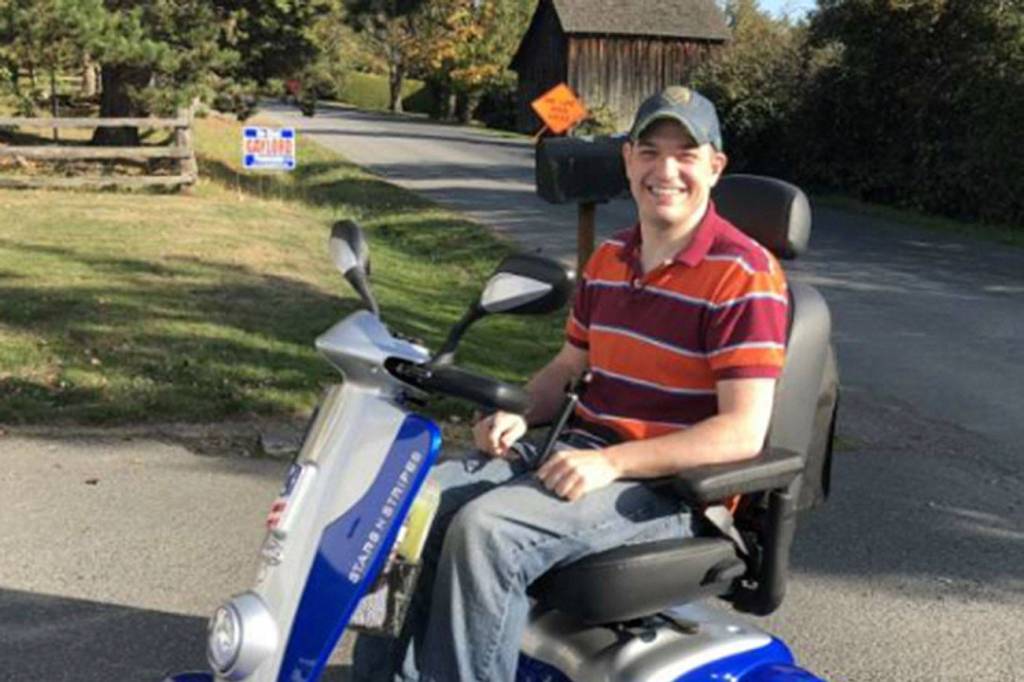The new scooter also arrived just as his worries about a 2011 accident are subsiding. That winter, an SUV knocked D’Errico out of his mobility scooter while he was crossing a sidewalk in Friday Harbor. He suffered from a head injury, then, later, hypervigilance, which means he was abnormally alert to potential dangers. This fear, he explained, caused him to “stay at home much more than before.”