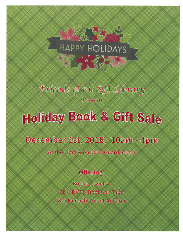Friends of the Library will host their annual holiday book and gift sale from 10 a.m.-4 p.m., Saturday, Dec. 1 at the San Juan Island Library on Guard Street. Items for sale include books, jewelry, CDs, DVDs and books on tape, and prices start as low as 50 cents. There will also be a silent auction.