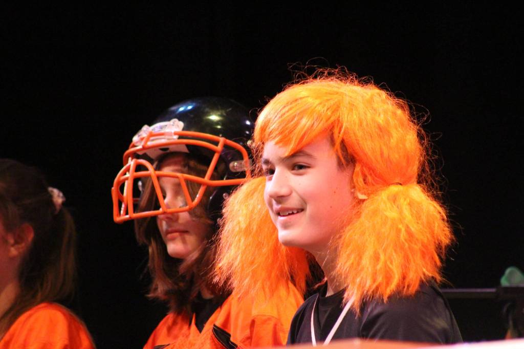 The answer was nine, there are nine words in “therein”: the, there, here, herein, her, he, rein, ere, in. The Kiwanis had 34 points until that point, and bet all or nothing giving them the final winning score of 68 points. The 11th- and 12th-graders were not far behind, also betting all or nothing, with a final score of 66 points.