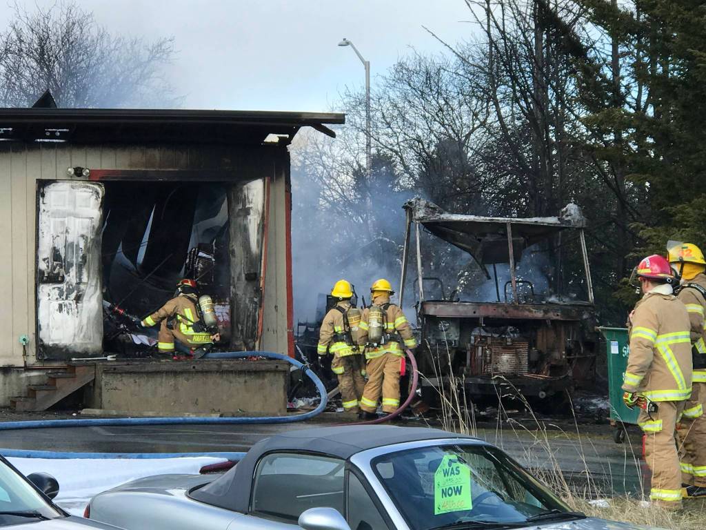 Office Supplies Plus caught fire when a motorhome parked next to it backfired setting both it and the building ablaze on Thursday, March 7.
