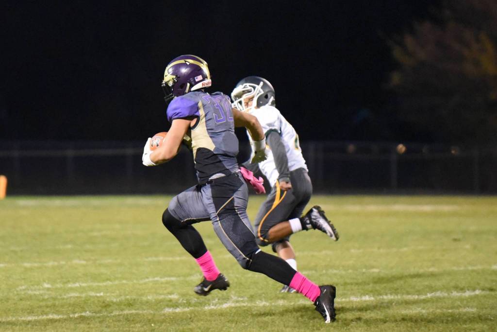 #30 Geoffry Volk runs up the middle for a good yardage gain. John Stimpson/Contributed photo.