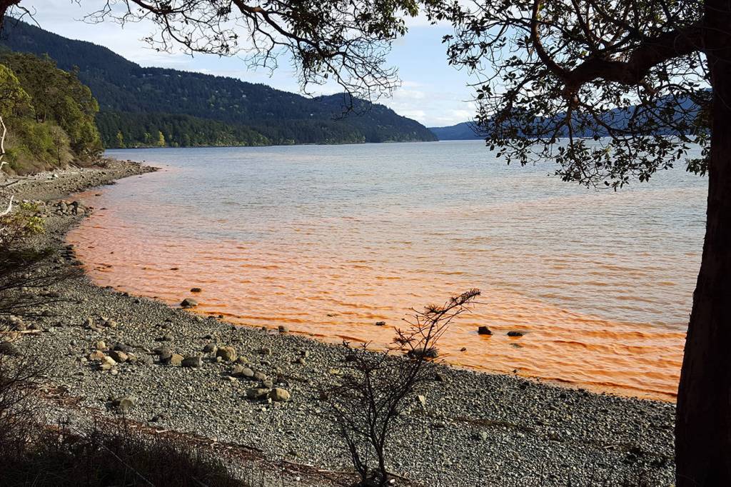Alexandrium is most abundant during the summer and spends the winter in marine sediments on the floor of coastal bodies of water, such as Puget Sound [and the Salish Sea], as a dormant resting cyst. When environmental conditions are favorable during the spring and summer, these cysts germinate to form swimming cells in the water column where they multiply and may be food for shellfish. (Life Cycle of dinoflagellate Alexandrium catenella.) The distribution and abundance of cysts in the sediment during the winter can be used to identify where there is greater potential for Alexandrium to bloom.