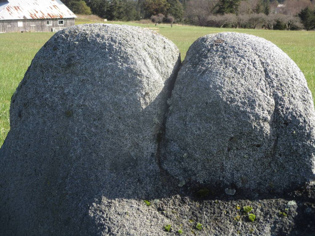 A few weeks ago I walked along the American Camp Trail past the airport as far as Shelter Road, then back into town via Cattle Point Road and Mullis Street. In a pasture across from the airport, I spotted a rock that, in the right light, is a dead ringer for an oversized set of buttocks. I had driven that way many times without noticing it. It’s a classic. It would have made Rodin proud.