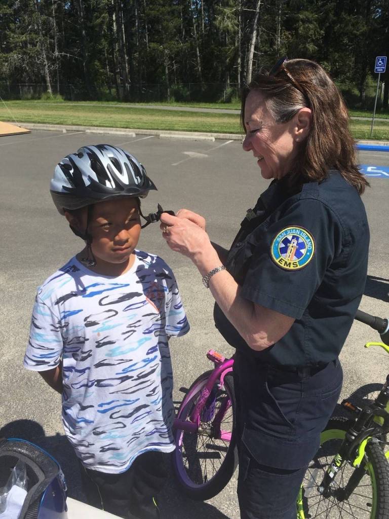 Some years ago, frustrated by biking injuries that were at least partly preventable with a good quality helmet, San Juan Island EMS began a free bike helmet program and give one to you. All you need to do is call, and we will make arrangements to fit you or your loved ones for a helmet. There are few things more discouraging for our EMS responders than showing up at a bicycle accident knowing that the injuries would have been far less serious with a good helmet. Please don’t be shy – it’s not just for those that can’t afford it, and we do accept donations.