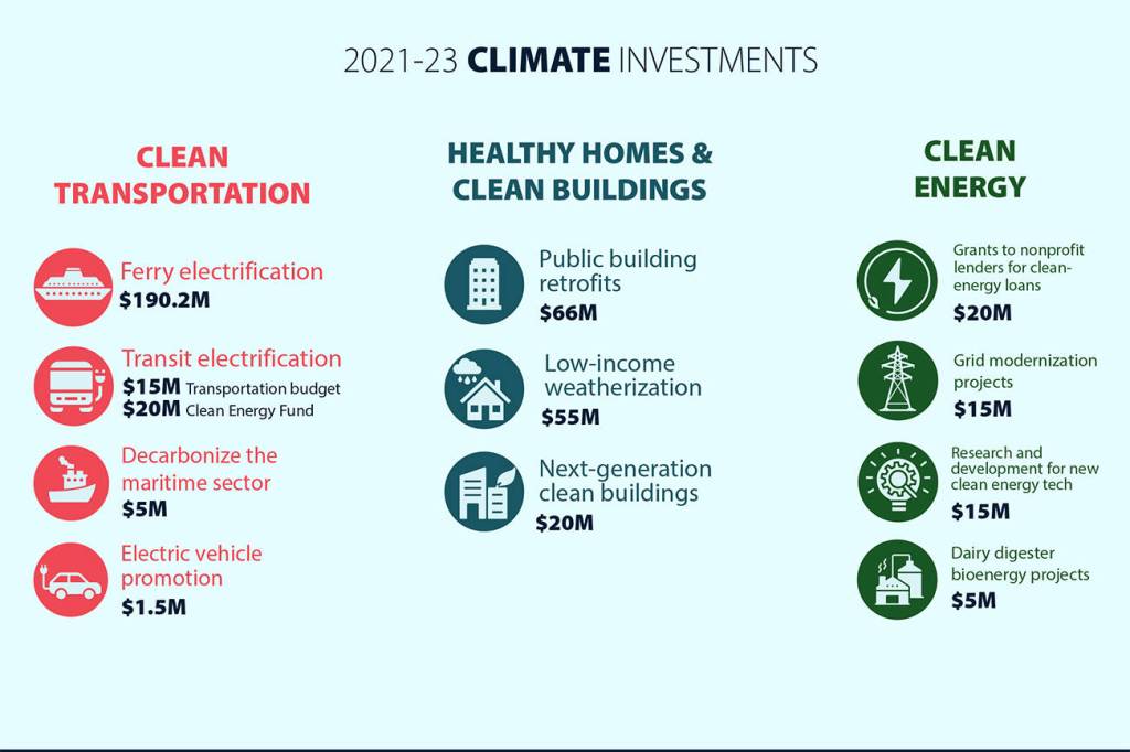 “By acting on these climate policies and investments, we will put our state on a path consistent with science and with equity,” Inslee said. “Our deeds will rise to what the climate crisis now demands — bold, transformative action that builds a prosperous future for all.”