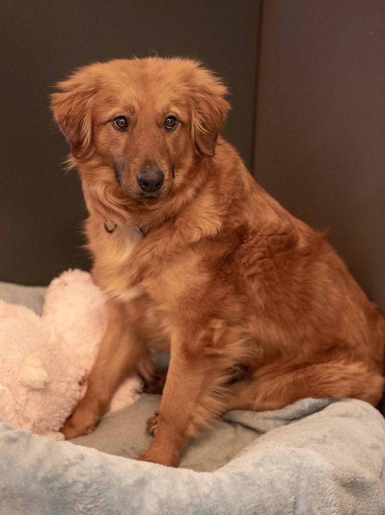 Queenie is a rescue dog that was transferred to APS-FH recently from a rescue group in Texas. She is about 4-years-old, weighs 30 pounds, and looks like a miniature golden retriever shepherd. Queenie was not socialized with humans prior to her rescue in Texas, but after moving into foster care she made progress quickly and was starting to build trust.