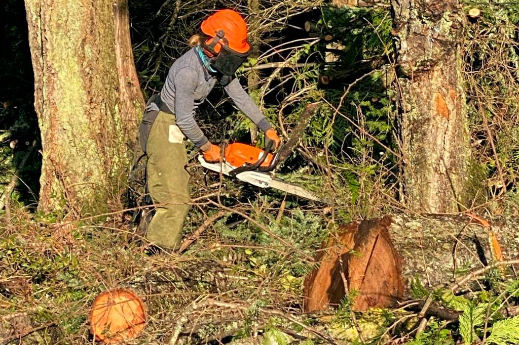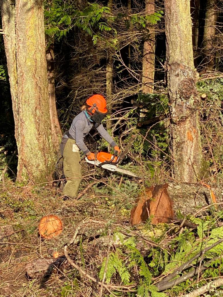 “Our modern San Juan County forests, on average, are overstocked and congested with a high number of sickly trees that are all competing for nutrients,” said Kai Hoffman-Krull, the San Juan Islands Conservation District Forest Health Manager. “These trees provide high risk for catastrophic wildfire and windthrow that can turn off our local power. We are working to convert a problem into an asset that can store nutrients and carbon for generations, increasing our forest resiliency in a changing climate.”